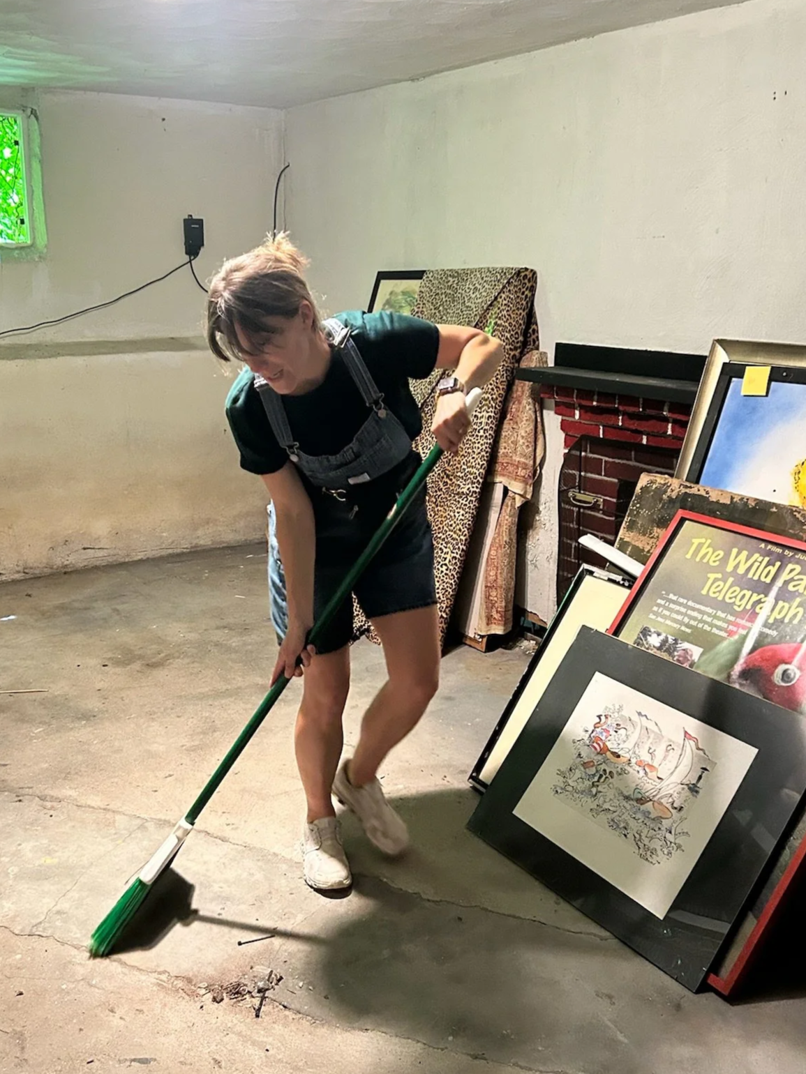 Cleaning and sweeping up a basement